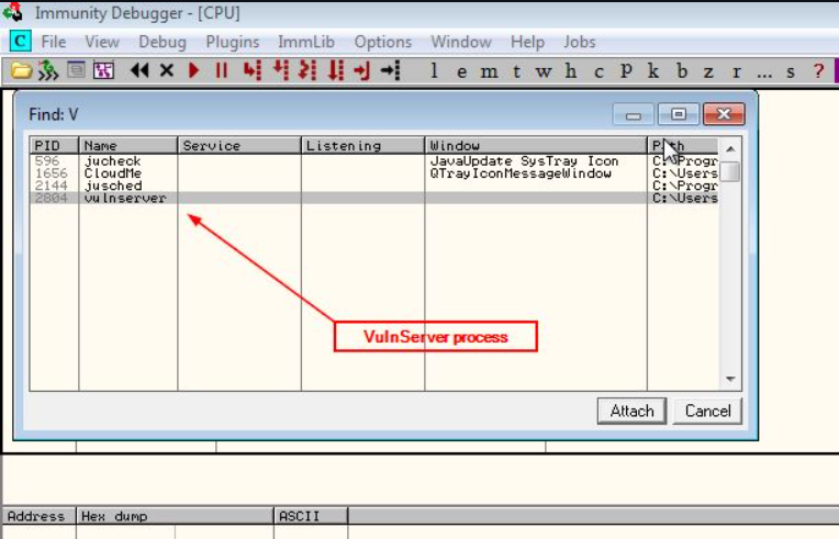 Tout semble bon, attachez maintenant le serveur au débogueur d’immunité