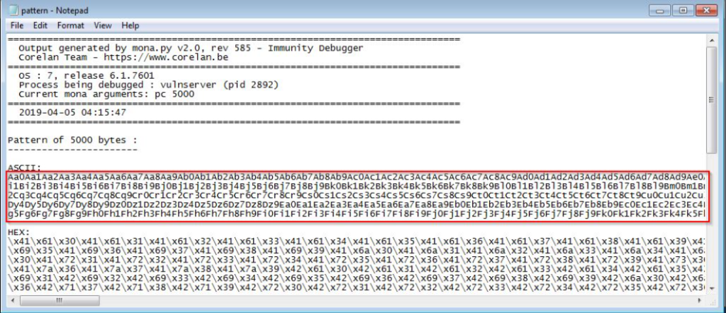 La commande précédente créera un fichier texte dans le répertoire du débogueur d’immunité avec le nom « pattern.txt »